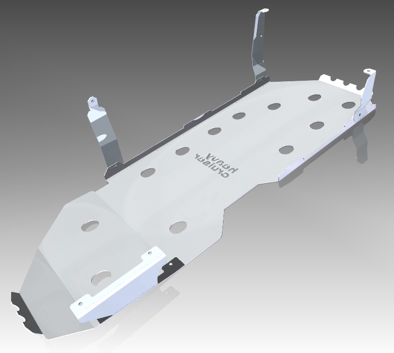 Hliníkový kryt nádrže pro vozidlo Toyota LC J150, vyrobený z hliníku o síle 5mm, váha 8 kg. Výrobce Heavy Cruiser.